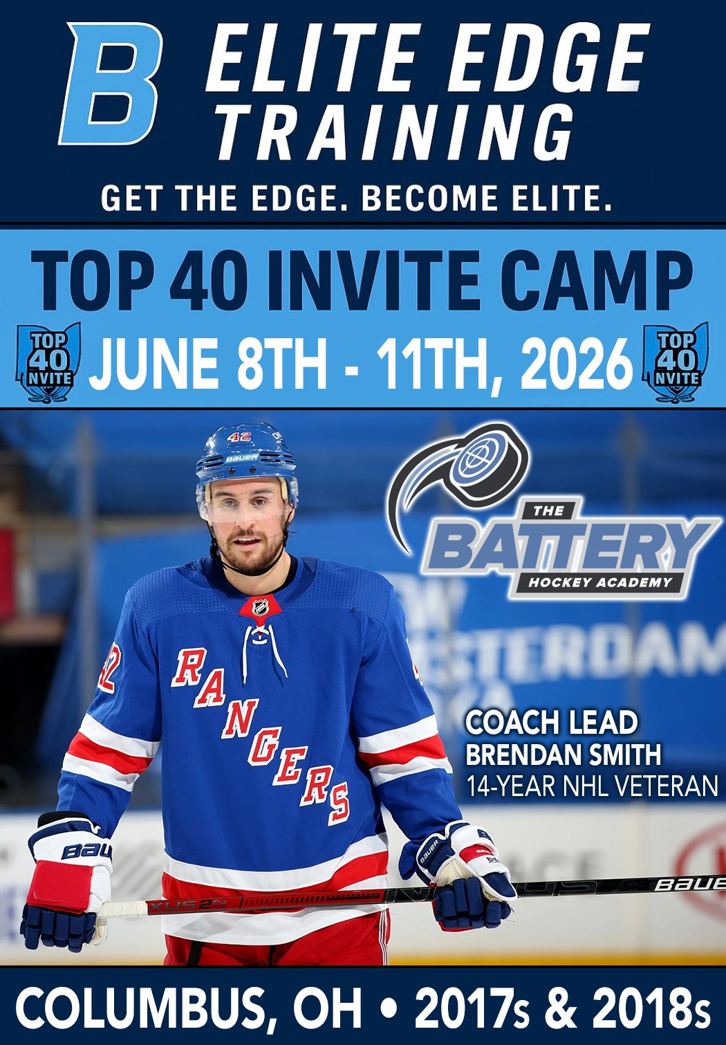 Brendan Smith (14-year NHL veteran) has created an event called the Top 40 Invite that will take place on June 8th - 11th in Columbus. This is an invite only event for the Top 40 2018s in the Mid-West (Ohio/MI/PA) area. Each day will consist of a 2-hour skate and an hour off-ice session. The on-ice session will be an hour skills session, 6 rotating stations with skill specific drills. The second hour will be a 4 team cross ice game. The off-ice portion will have guest speakers, training sessions, and breakout education sessions.